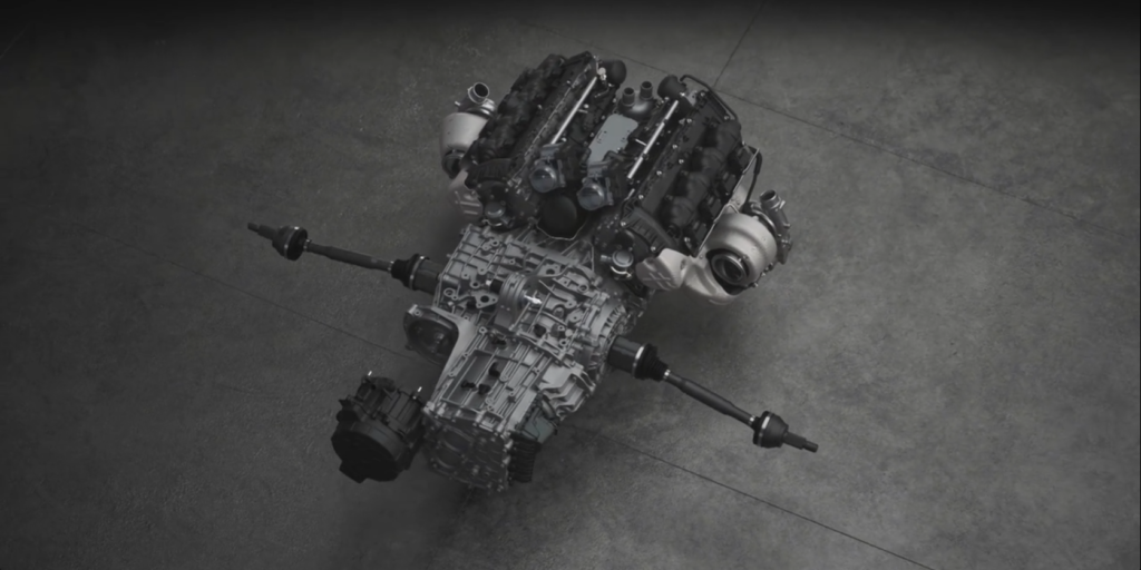 「新設計MHP-8 V8+軽量Eモジュール+F1由来バッテリー+8速DCT(Eデフ内蔵)」