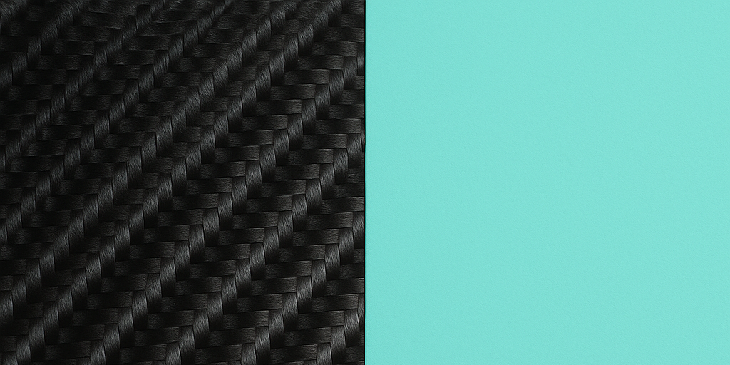 カーボンファイバーの荒々しい繊維とティファニーブルーの滑らかな艶が対照的に共存する。